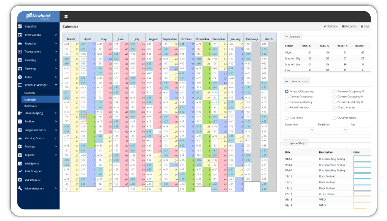 Price Optimization and Floating Rates are essential tools for improving any fixed and perishable inventory business such as hotel rooms. Newhotel Cloud provides a sophisticated module of Revenue Management supported by the same Hotel PMS database that automatically reacts to changes in the occupancy and adjusts the daily prices to maximize expected Revenue.