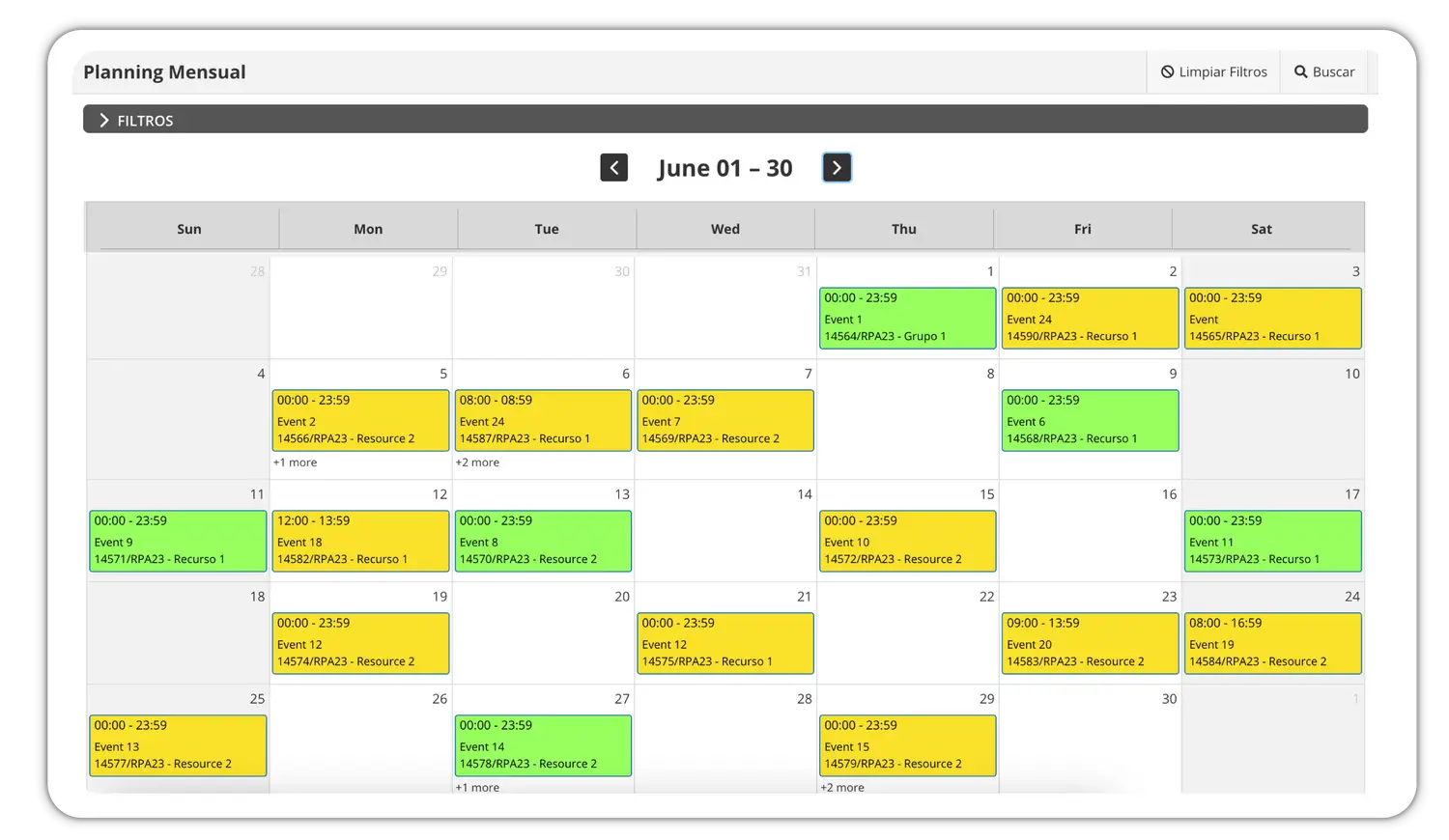 Highly flexible configuration and planning of any kind of resources such as treatments rooms, cabins, sauna, baths, access to gyms, jacuzzi or swimming pools and therapists.